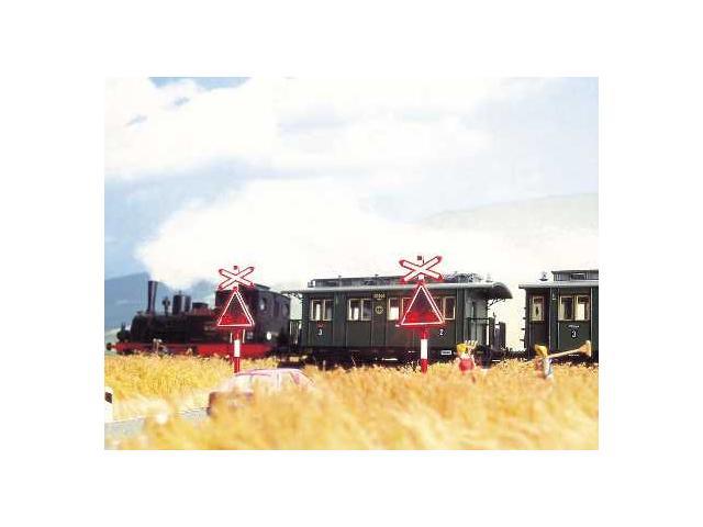 2 železniční přejezdy - semafor Švýcarsko Kompletní set: 2x varovné světlo s 2x červené LED diody Elektrické blikací zařízení zkosené kříže na semaforech - dvoukolejný přejezd Připojení hotové a funkční