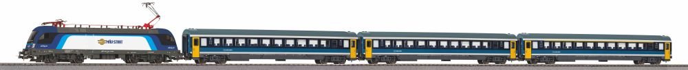 Informace k 57037 PIKO - Start set obsahující elektrickou lokomotivu TAURUS a 3 rychlíkové vozy, kolejivo s podl