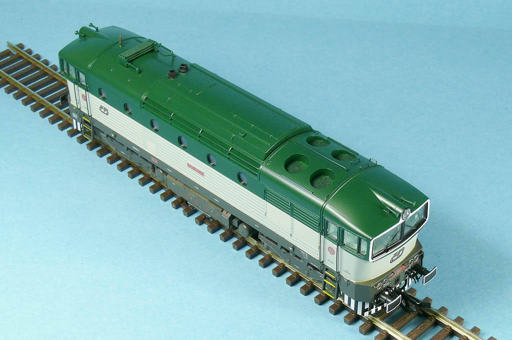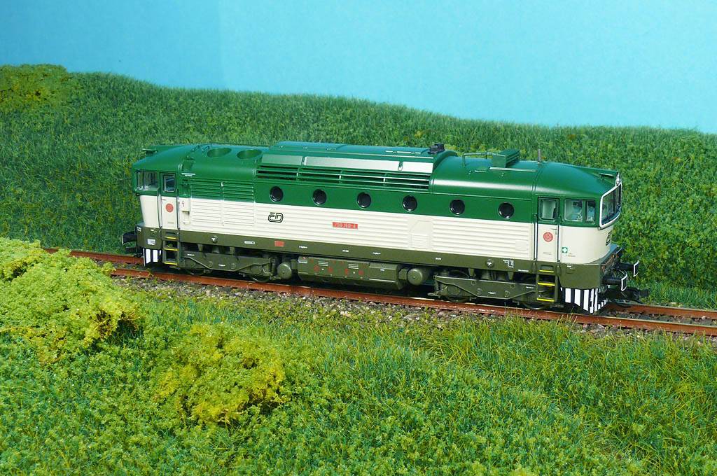 Dieselová lokomotiva 750 drah ČD v zelenošedém provedení. Parametry lokomotivy: Osvětlení: ano žlutá/červená přepíná dle jízdy DCC: příprava, rozhraní NEM (6-pin) Spřáhlo: dle NEM. Nápravy: hnané všechny 4, jedna opatřena bandážemi. Motor: 5-ti pólový, setrvačník délka: 137,5mm.
