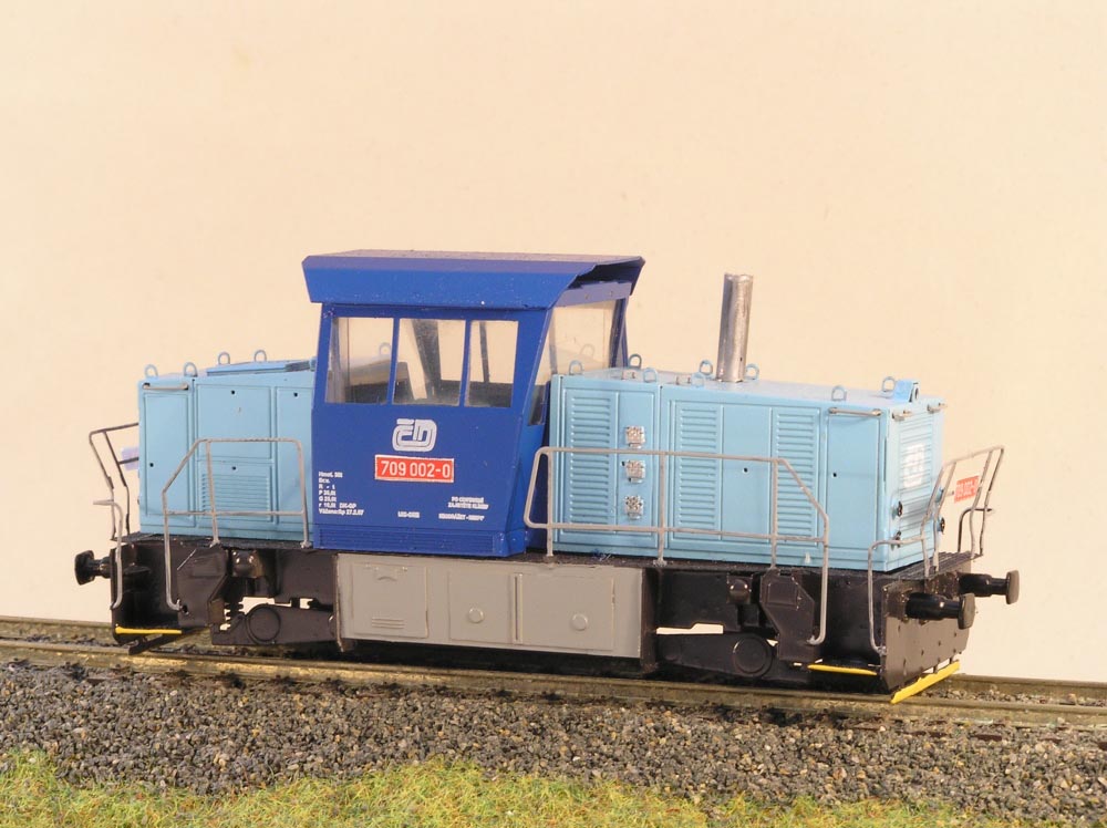 Maketa dieselové lokomotivy 709 002-0 ,,CARGO". Balení obsahuje ( karoserii s rámem v barvě, jako na obrázku i s popisy, masky podvozku, nádrž, nárazníky a drobné doplňky). Neobsahuje (motor, převody, podvozky, osvětlení, kola).