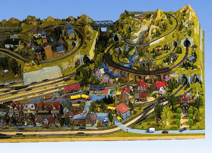 Montovaný díl pravý "Kolejiště"-Schattenbahnhof,který obsahuje kopce,skály,tunely, jezera, potoky a má naznačeny jízdní dráhy pro kolejivo. Krajinka je zatravněná a ručně malovaná.