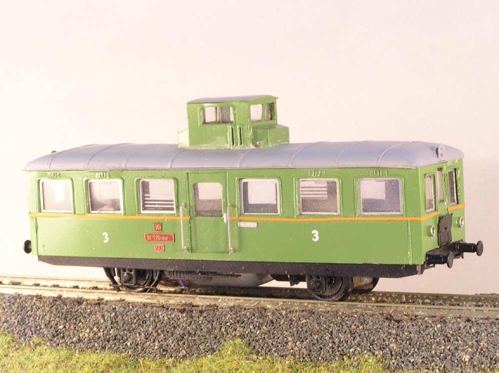 Maketa motorového vozu M120.487. Jedná se o maketu bez motoru. Barva: světle zelená
