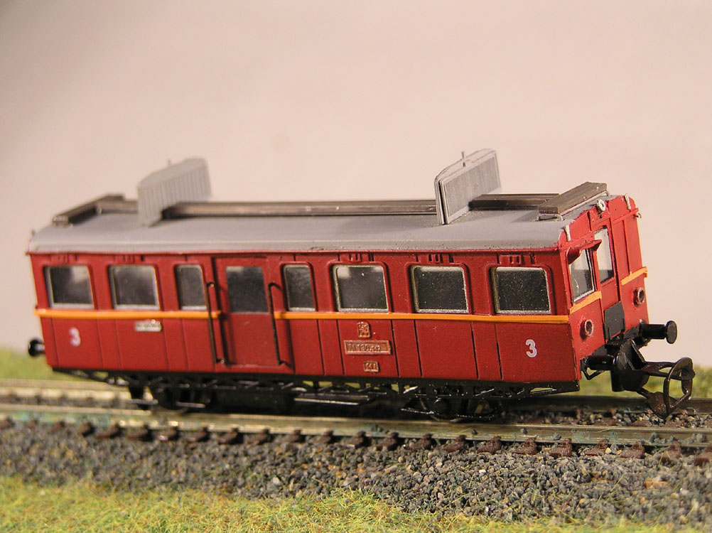 Kompletní model motorového vozu M130.142. Jedná se o model s pojezdem. Barva: červená
