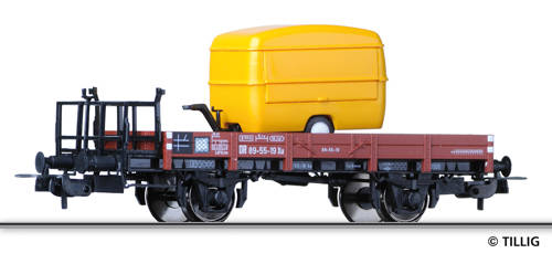 Nízkostěnný vůz X 89, ložený přívěsem drah DR.