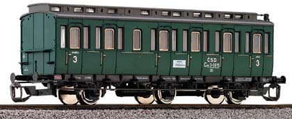 Osobní vůz drah ČSD interier je vybaven, 3nápravový oddílový vůz, 3 třída délka: 110 mm. Kulisa na krátké spřáhlo.