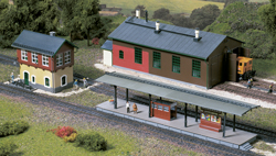 Startset-stavebnice- staniční budova. -Lokomotivni depo,hradlo.... Lokomotivní depo:-brána-výška60mm -brána šířka43mm -Vzdálenost os kolejí54mm Vhodná 220mm (lokomotiva)