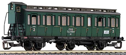 Osobní 3 nápravový oddílový vůz s brzdařskou budkou drah ČSD, 3 třída,vnitřní vybavení. Délka: 110 mm, kulisa na krátké spřáhlo.